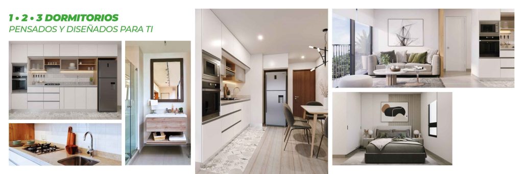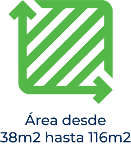 Desde 38m2 hasta 116m2 desde 1, 2 y 3 dormitorios.